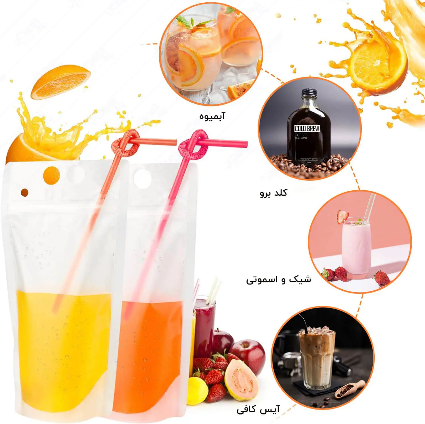 پاکت ایستاده زیپدار شفاف براق ویژه مایعات و نوشیدنی