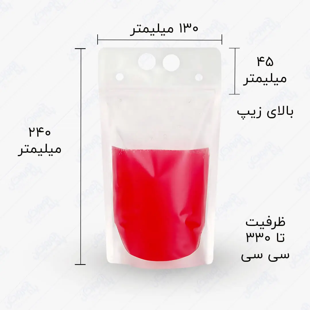 پاکت ایستاده زیپدار شفاف براق ویژه مایعات و نوشیدنیدر 1 سایز قابل سفارش است.