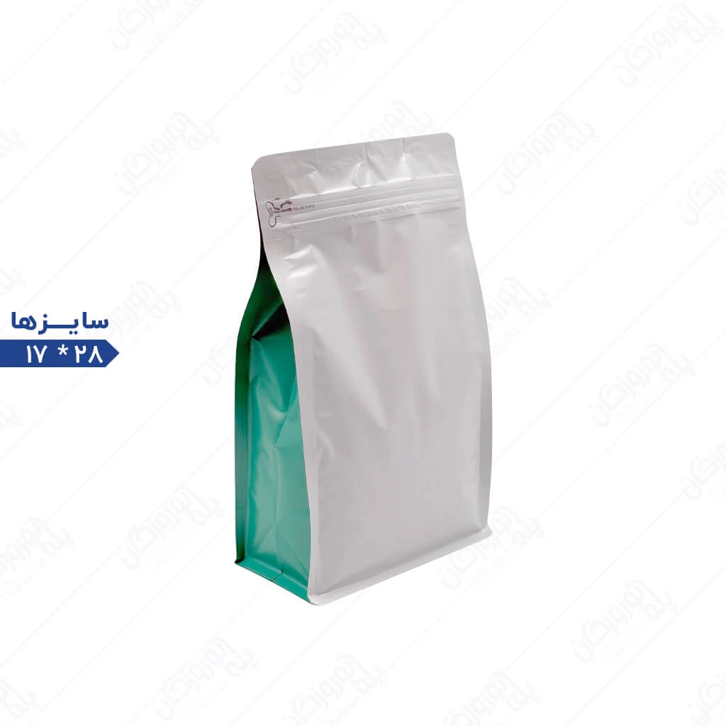 پاکت باکس پوچ سفید مات با گاست سبز در چندین سایز متنوع، با قیمت اقتصادی،مناسب برای بسته بندی های دان و پودر قهوه، چای، آجیل و سایر محصولات با کیفیت تضمینی با قابلیت چاپ اختصاصی – ارسال به سراسر ایران